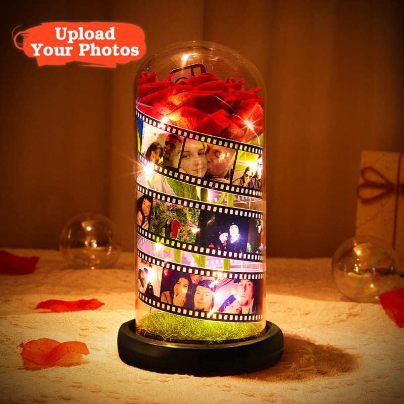 Cadeau De Saint-valentin Personnalisé : Rose Dans Un Dôme En Verre, Lampe Led, Rouleau De Film, Cadeau Pour Anniversaire