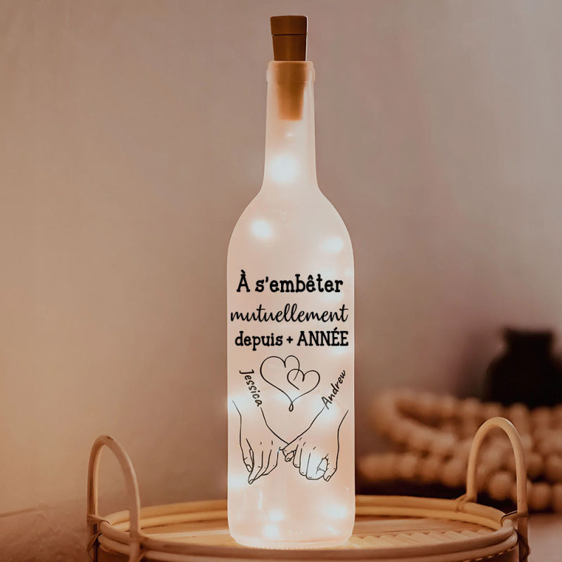 Lampe Bouteille Personnalisée Avec Prénoms, Couple Main Dans La Main, Cadeau D'anniversaire De Saint-valentin