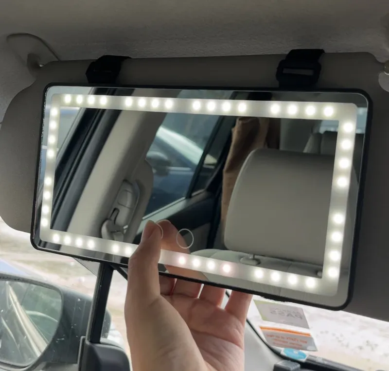 Miroir De Courtoisie Led Personnalisé Pour Visière De Voiture – Miroir De Maquillage Éclairé À Intensité Variable