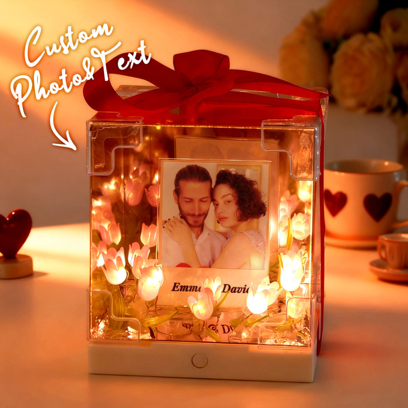 Boîte Miroir Infini Personnalisée Avec Photo Et Texte, Motif Tulipe, Kit Diy