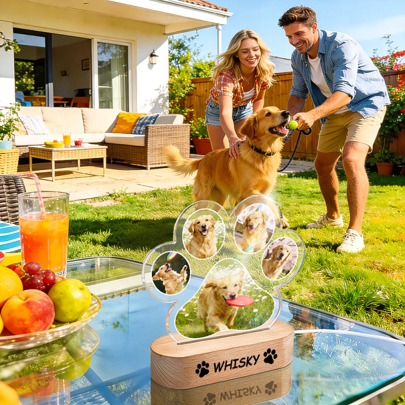Veilleuse Personnalisée En Forme De Patte Avec Photo De Votre Animal De Compagnie Et Nom Gravé. Cadeau Idéal Pour Les Amoureux Des Animaux.