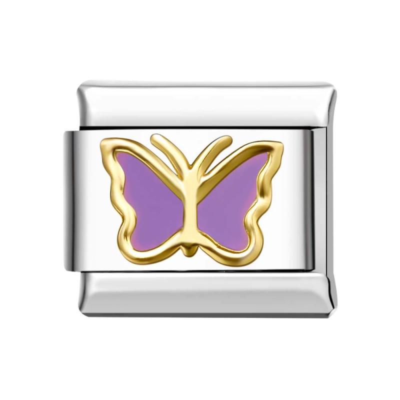 Breloque Papillon Violette À Bordure Dorée Pour Bracelets À Breloques Italiennes