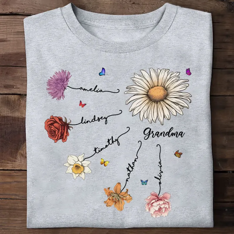 Sweat-shirt Personnalisé « grand-mère Et Maman » Avec Fleurs De Naissance, Cadeau Pour Les Mamans Et Les Grands-mères