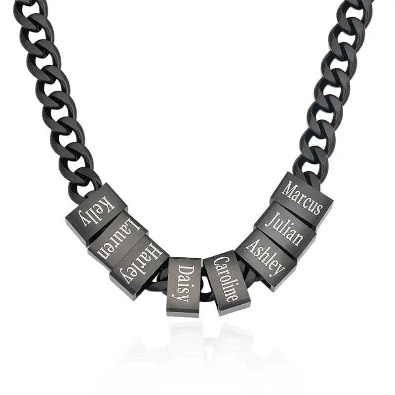 Collier Minimaliste Personnalisé Pour Homme Avec Chaîne Gourmette Et Noms Gravés (1 À 10) - Cadeau Idéal Pour La Fête Des Pères, Un Anniversaire Ou Toute Autre Occasion Spéciale Pour Papa Ou Grand-père.